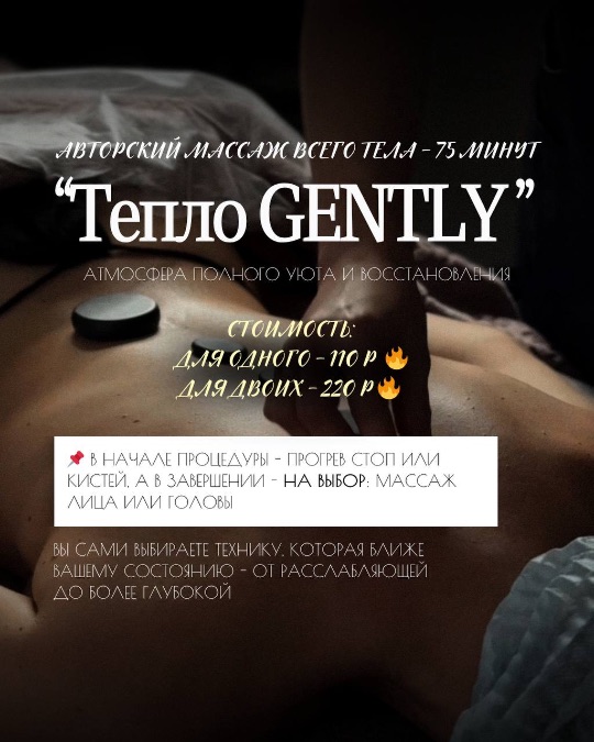 на 1-ое посещение скидка 20%(при записи сообщите промокод GENTLY): 60 мин | 95р