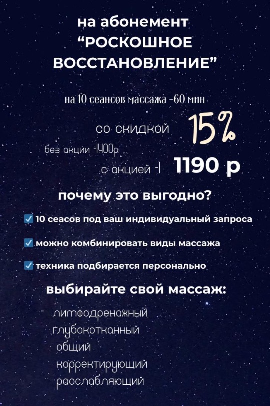 Это не просто процедура — это персональное путешествие к балансу, в котором тело отдыхает, ум обретает лёгкость, а пространство принадлежит только вам и вашим близким.